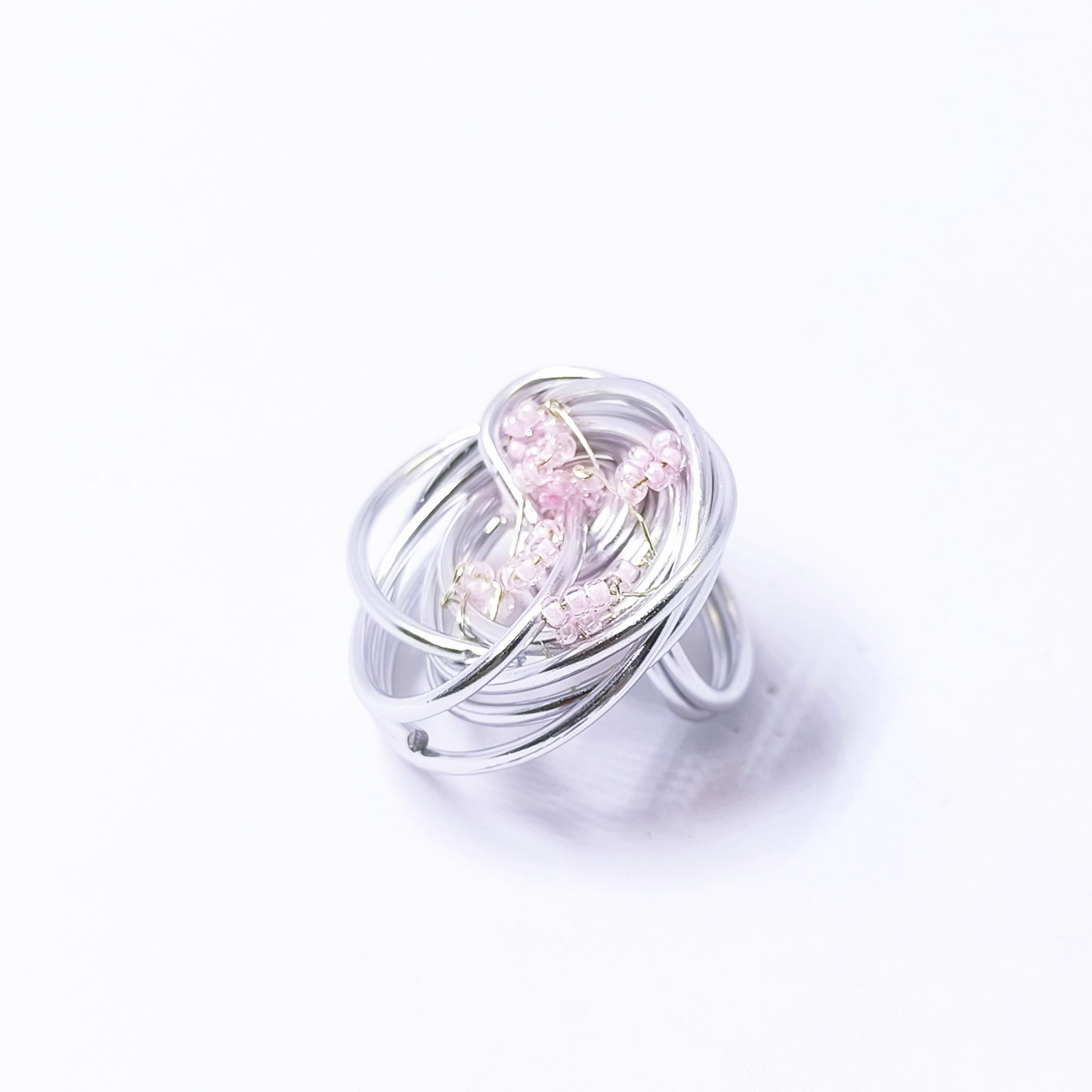 Oznake: aluminijasti prstan, eleganten prstan, Frida, prstan z roza perlami, ročno izdelan nakit, srebrn prstan, Stina prstan, unikatni prstan