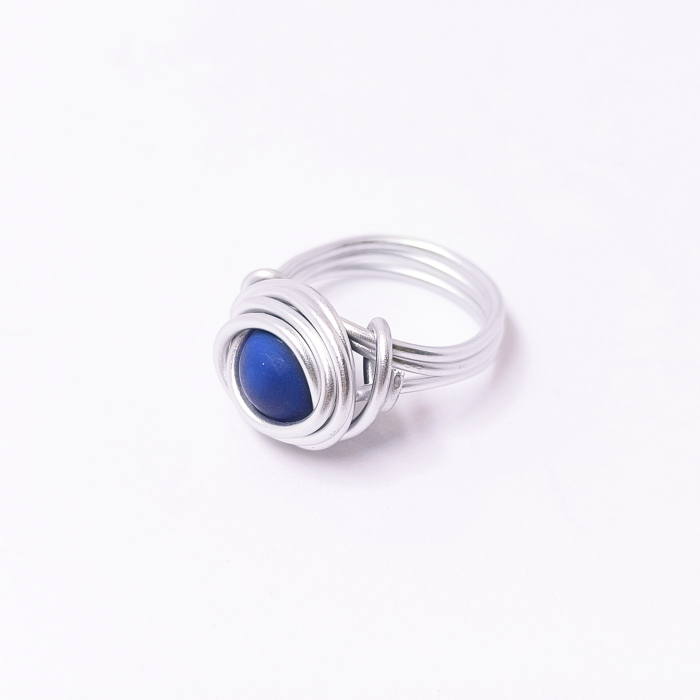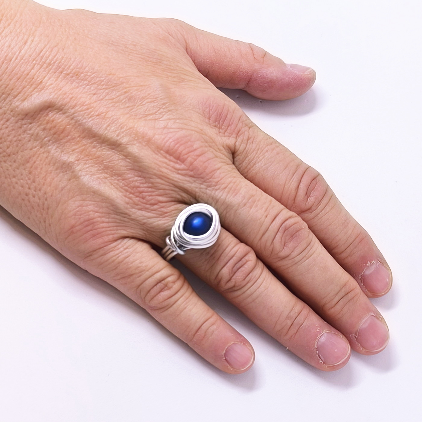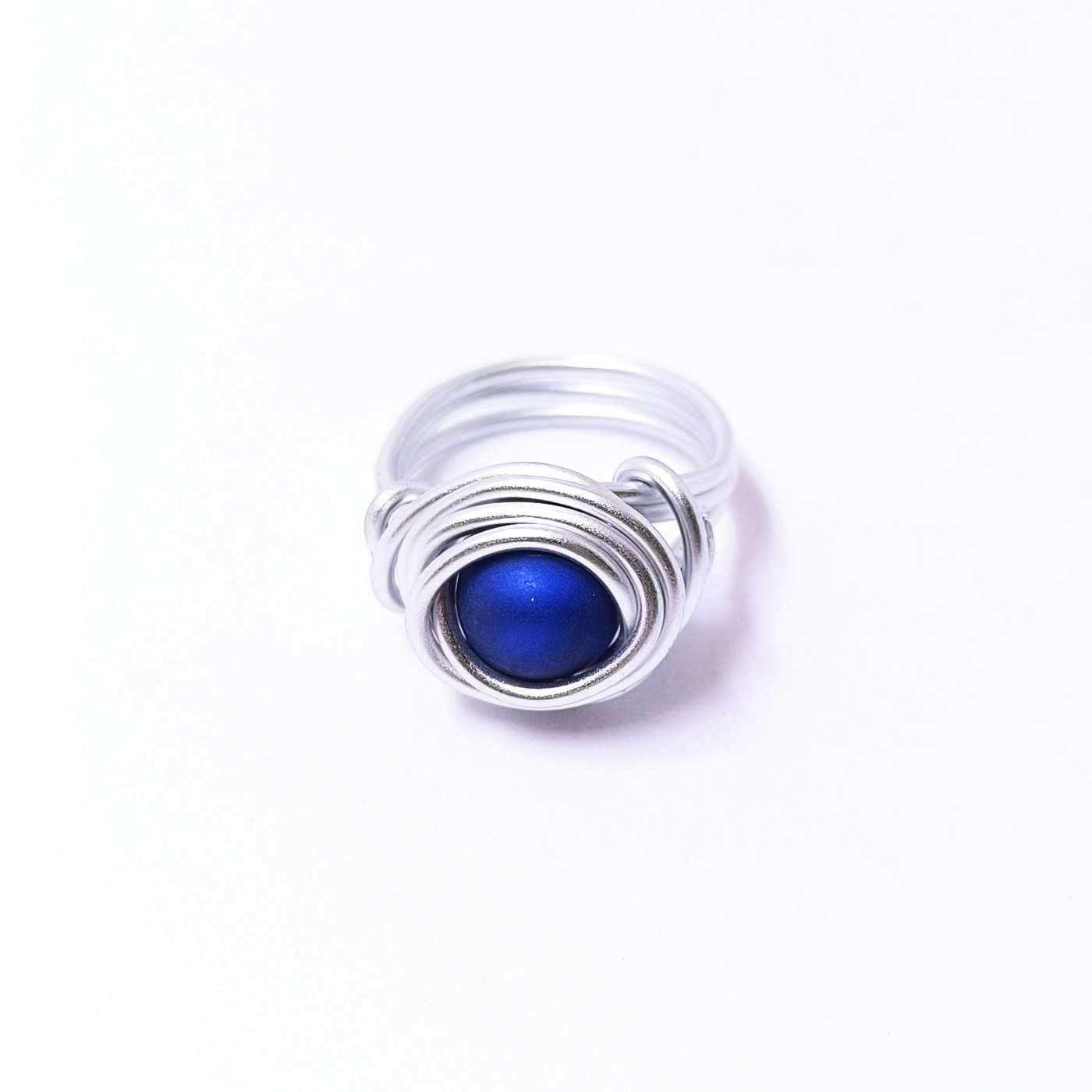 Oznake: aluminijasti prstan, Greta, minimalističen prstan, prstan z modro perlo, ročno izdelan nakit, srebrn prstan, Stina prstan, unikatni prstan