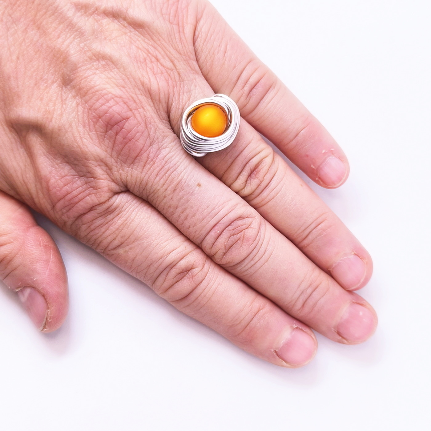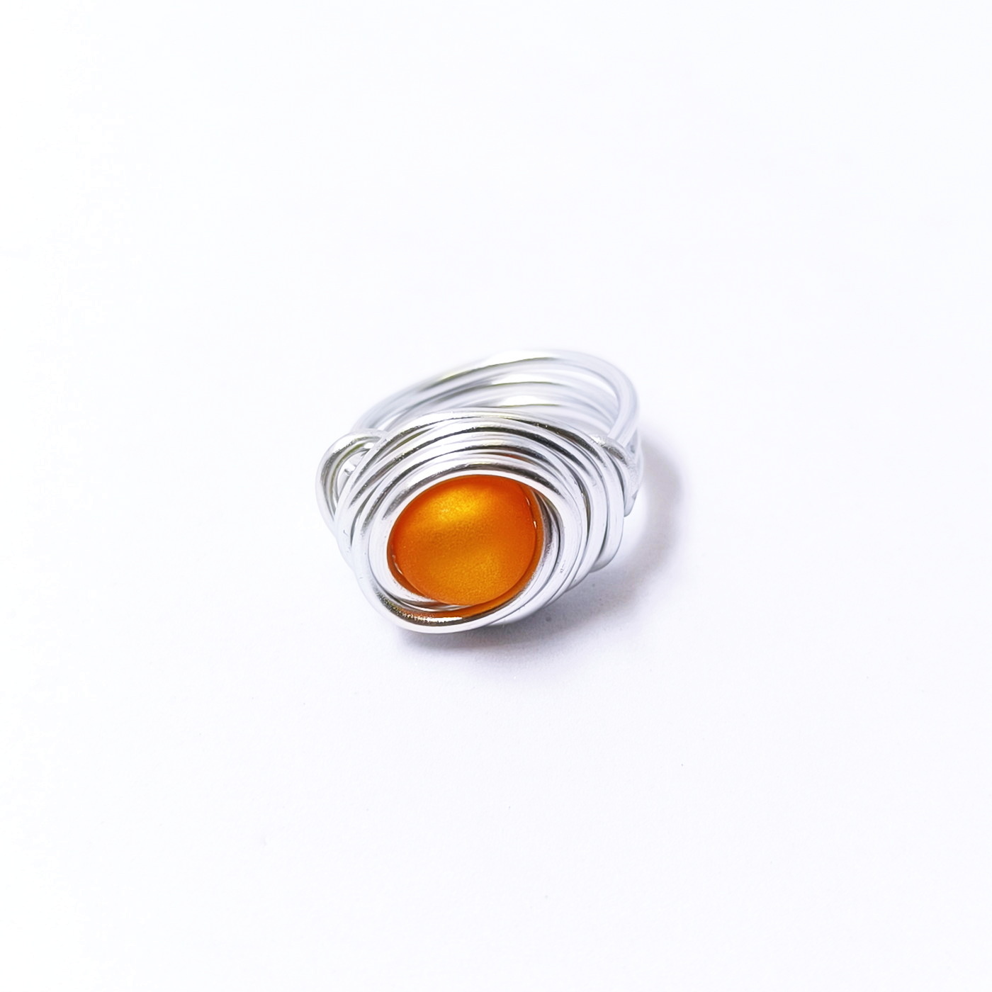 Oznake: aluminijasti prstan, Greta, minimalističen prstan, prstan z oranžno perlo, ročno izdelan nakit, srebrn prstan, Stina prstan, unikatni prstan
