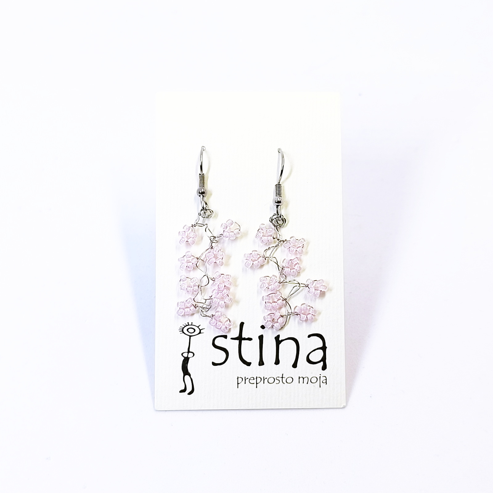 Uhani Asta so ustvarjeni za tiste, ki obožujejo igrivost, barve in lahkotnost. Izdelani so iz ročno oblikovane aluminijaste žice in drobnih perl, ki v svetlobnih odsevih oživijo kot drobni cvetovi.
