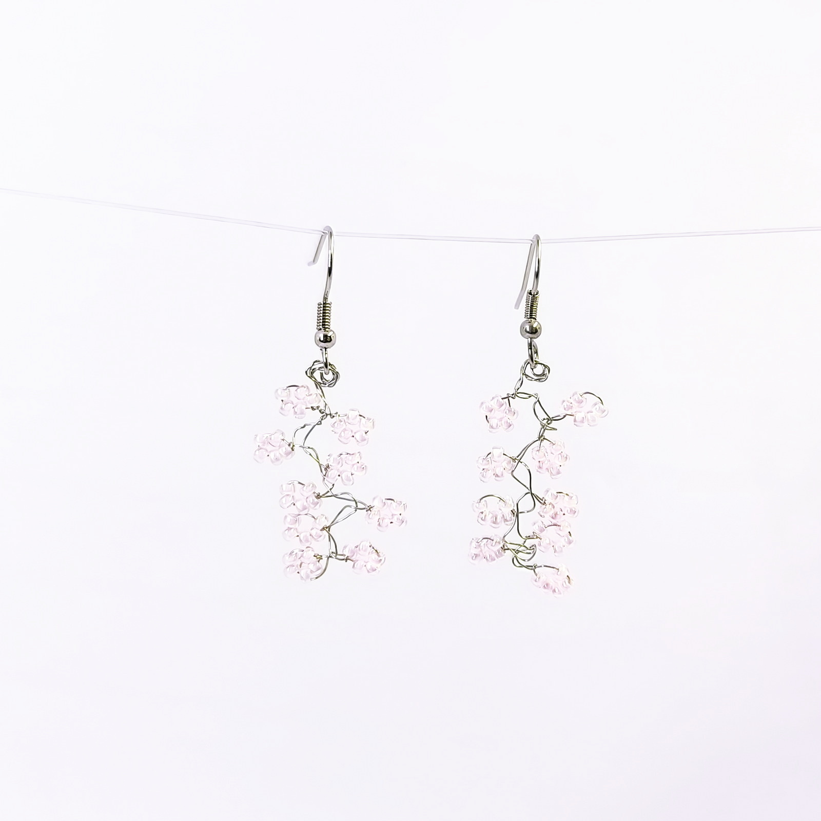 Oznake: dodatki, nakit, perle, ročno delo, srebrna barva, steklene perle, uhani, uhani iz žice, unikat, viseči uhani, ženske, žica