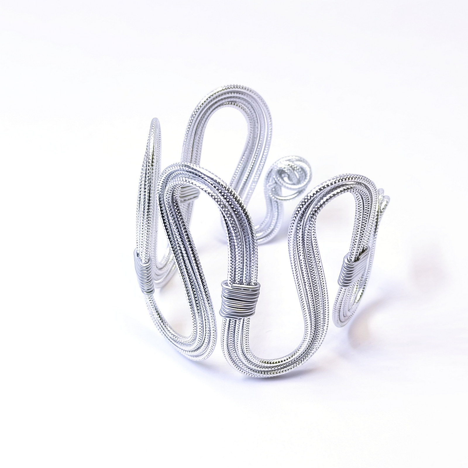 Iz aluminijaste žice, nežno upognjene v tekoče linije, se rodi oblika, ki sledi občutku – ne pravilu. Upognjene v tekočo, valovito linijo spominjajo na ritem življenja.